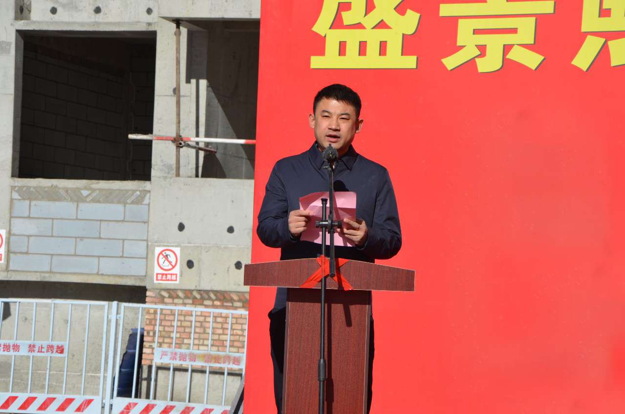 徐遼飛在致辭中向奮戰在一線的各參建單位表示衷心的感謝和誠摯的敬意。他指出,盛景熙苑主體結構的順利封頂,標志著項目工程建設取得了關鍵性階段成果,為后續工作開了個好局。他希望,各參建單位進一步壓實主體責任,加強協作,確保項目按期、保質、順利竣工。