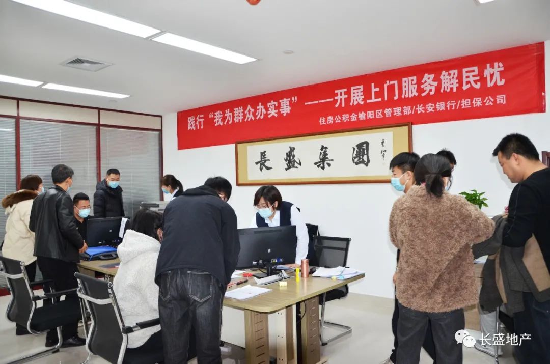 近日,榆林市住房公積金管理中心榆陽區管理部、榆林市中小企業融資擔保有限公司、長安銀行股份有限公司榆林分行營業部、榆林市長盛集團房地產開發有限公司,在公司行政辦公區為群眾集中辦理項目住房公積金貸款業務。