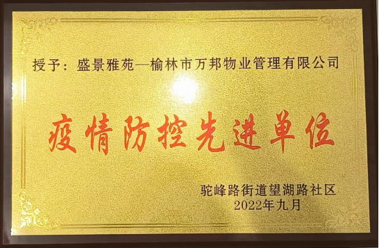 喜訊丨萬邦物業-盛景雅苑項目被評為“疫情防控先進單位”
