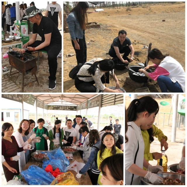 是時候表演真正的技術了:野外烤肉即將開始。大家積極參與,有的搭帳篷,有的洗菜,有的串肉,有的搭火爐......忙碌而快樂著。